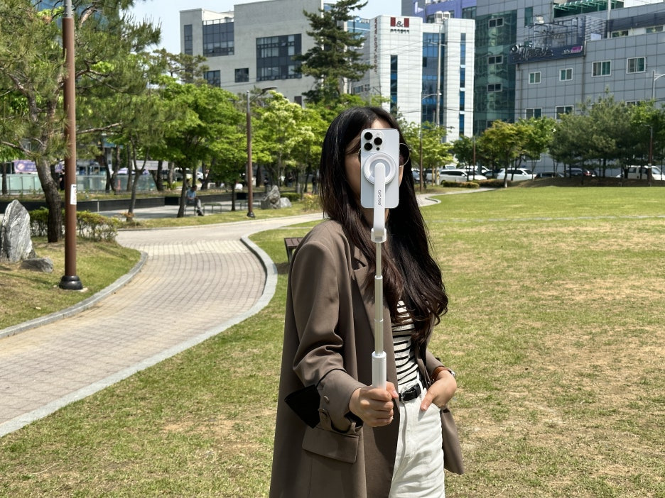 맥피포드가 매력적인 이유 중 하나는 강력한 네오디뮴 자석 덕분에 스마트폰을 1초 만에 "착!" 하고 고정할 수 있다는 점입니다. 따로 클립을 벌릴 필요 없이, 그냥 스마트폰을 가져다 대기만 하면 되니까 정말 간편해요! 게다가 **측면 버튼을 누를 걱정**도 없어요. 이런 편리함, 진짜 셀피 마니아라면 무조건 환영이죠!